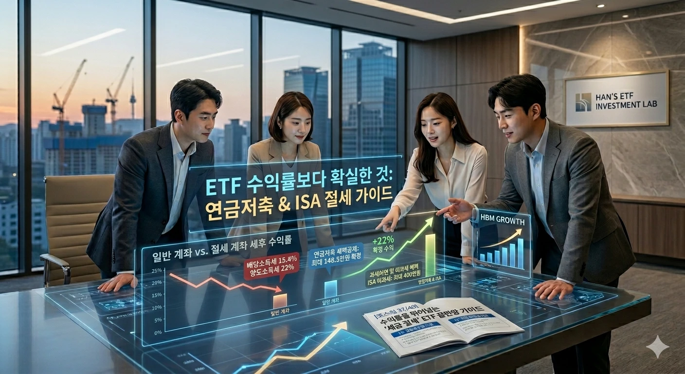 저 역시도 자산을 형성한느 과정에서 이 세금 문제를 뼈저리기 느꼈습니다. 그리고 깨달았습니다. 세금을 아끼는 것이 곧 가장 확실하고 변동성이 없는 확정 수익이라는 사실을 말이죠. 1%의 초과 수익을 내기 위해 밤새 차트를 보는 것보다 절세 계좌 하나를 제대로 세팅하는 것이 훨씬 효울적입니다. 오늘은 장기 배당 투자의 성패를 가를 핵심 변수, 절세 계좌(연금저축, ISA)를 활용한 ETF 세금 절약 전략을 숫자를 통해 분석합니다.